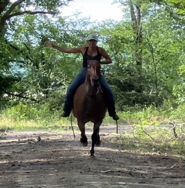 Rhea is not a bottom of the heard but not a lead mare either- just that perfect mix of standing up for herself but not getting into fights. Rhea is confident, griddy, easy handle, loads and backs off trailers with ease. She isn’t your typical cold backed, barn sour, can’t get along with anyone mare. You can leave her turned out in the pasture with other horses or in a stall by herself and she won’t care. You can haul her anywhere, anytime, any distance, in anything and she’ll do it.